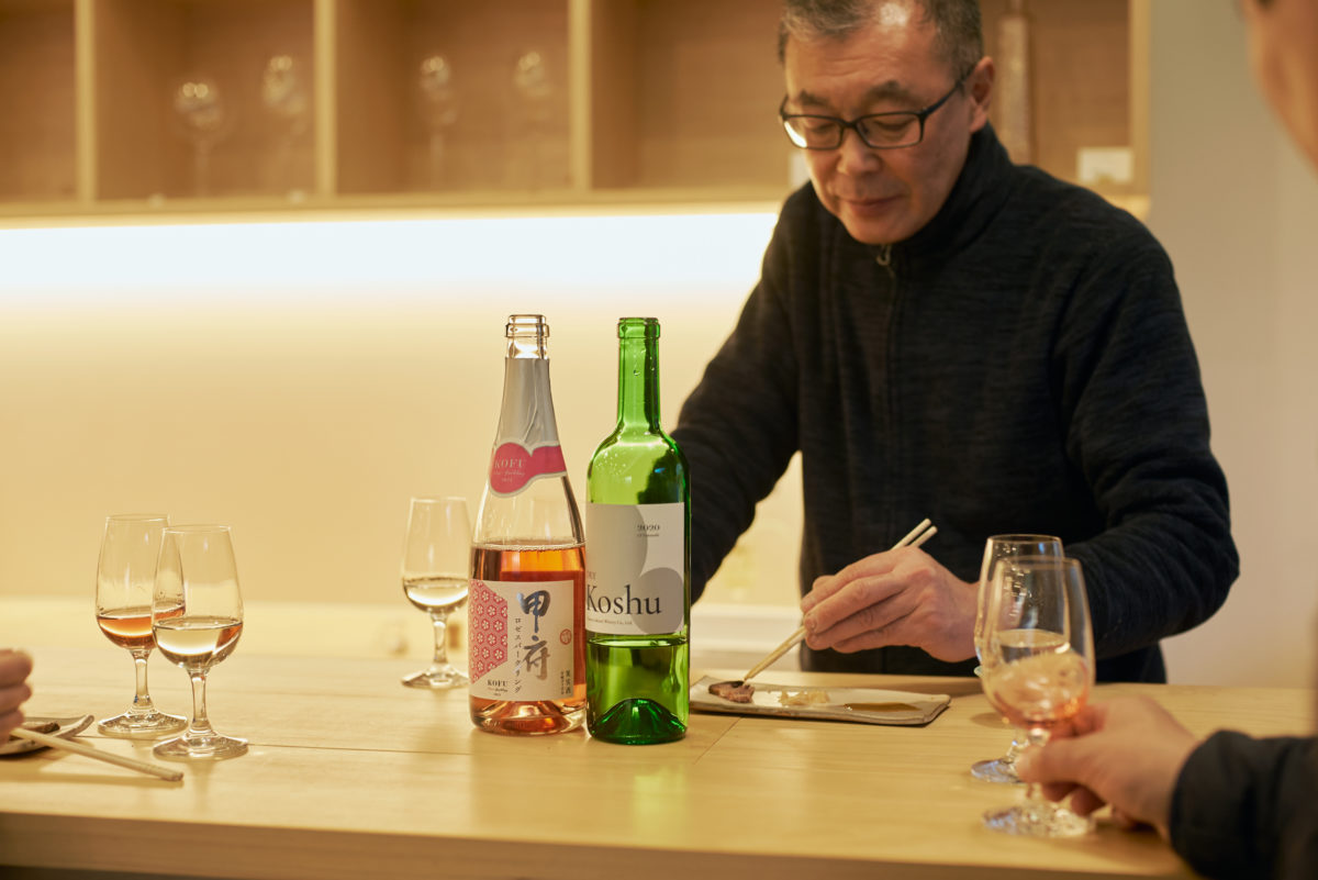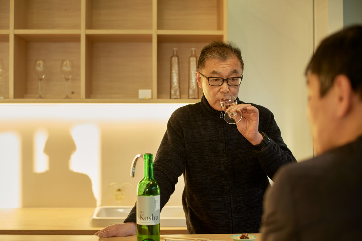 私は家に常備するくらい甲州ドライが好きなんです。いろんな食事に合うし、本当に気取らずに飲めるのがすごく良くて。常々、地元にこんないいものがあると知ってもらいたいと思っています。今日はグラスに入れてますけど、コップで気楽に飲む文化も広まってほしいです。