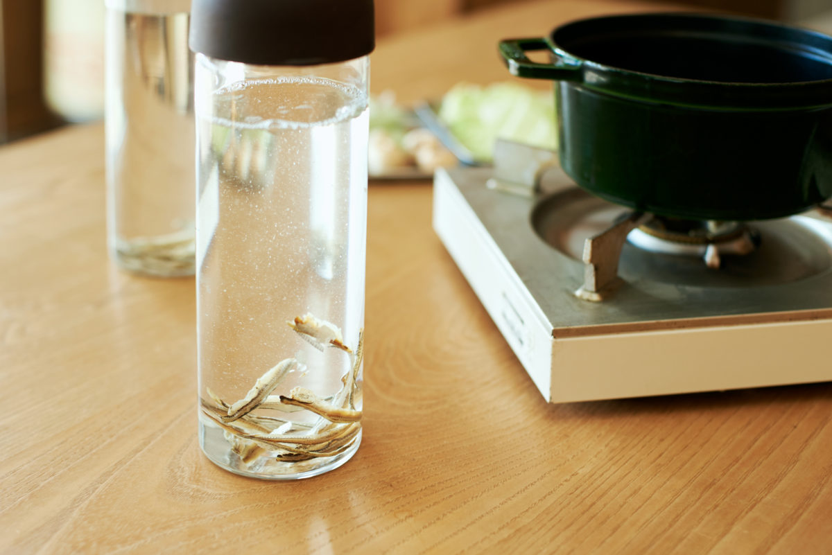 うん。うちの場合はいりこだしはボトルに入れて、毎日使ってるよ。あと、いりこのだしガラは取り除かずに、一緒にお鍋に入れて煮ちゃう。栄養があるし、食べるとギュッとだしが広がるんだよね。