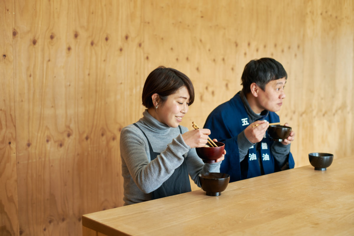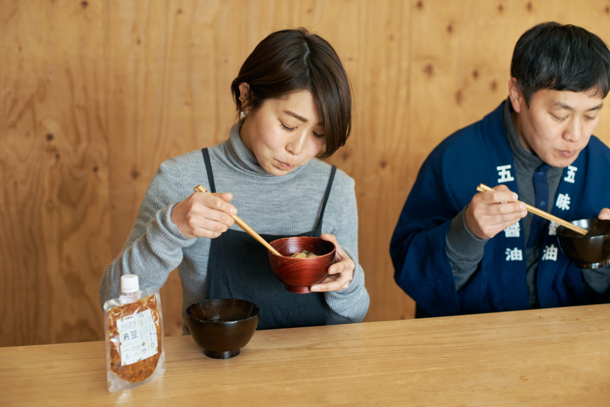 ▲左から、五味醤油「やまごみそ」のみそ汁、おかめ麹「米みそ」のみそ汁