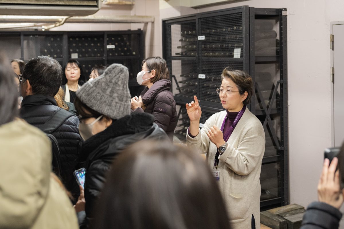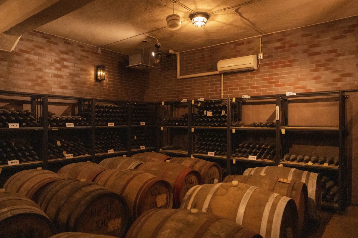 研究のために学生がつくったワインが1947年のものからあるといわれている地下の貯蔵庫は、防空壕の跡地だったそう。ワインの濃厚な香りが漂う空間で西暦が書かれているプレートを見ながら、みなさんそれぞれご自身の生まれ年のワインを探しているようでした。