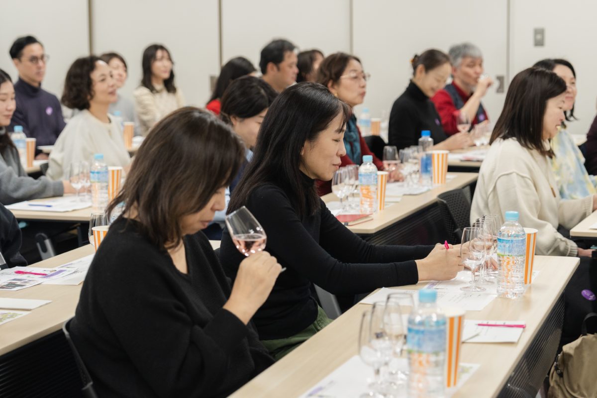 柳田教授からは、飲む際の香りの楽しみ方やグラスの選び方から回し方まで、ワインを楽しむための所作について細かくレクチャーいただき、熱心にメモを取る方も見受けられました。