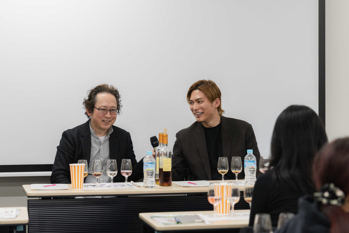 またスペシャルゲストとして、ワインへの造詣が深くワインエキスパートの資格を取得しているEXILEのSHOKICHIさんを迎え、一緒にトークと試飲を楽しみました。SHOKICHIさんは、出身地である北海道でワイン醸造に携わった経験を持ち、現在は肉牛も飼育。ちょうどフランスのワイン生産者を訪ねて帰ってきたばかりということで、現地での話を交えながら、ご自身が考えるワインの魅力について語っていただきました。SHOKICHIさんは、山梨のワインの中では「甲州種」が特に好きとのことで、日本のどんな料理にも合わせやすいと絶賛していました。
